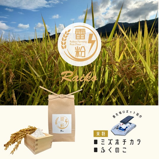 ◇雷粉(ミズホチカラ/ふくのこ)ロボット技術で食料自給率向上・耕作放棄地拡大を食い止める、最先端稲作プロジェクトにより誕生した"ロボット耕作米"の米粉です。