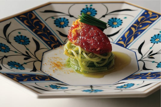 融合のアプローチ日本固有の食材 とフランスの伝統的な調理手法を融合させまったく新しい発見をしていただきます。美食都市東京らしい洗練された料理をお楽しみください。