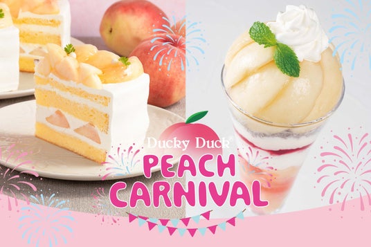 旬の桃を使用したスイーツやお食事を幅広く取り揃えた、まるでお祭りのように心が躍る「ピーチカーニバル」をダッキーダックとEggEggキッチン全店で開催中!