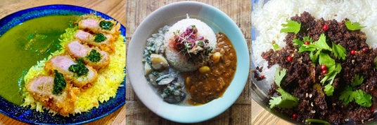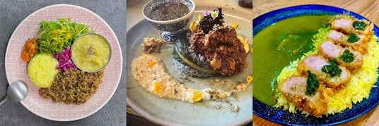 左から「東新宿サンラサー」「Curry&Noble 強い女」「Japanese Spice Curry WACCA 」※写真はイメージです。当日提供するものとは異なります。