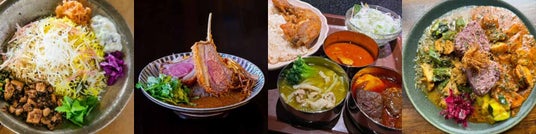 左から「INDIA GATE」「シャンカラ堂」「松本メーヤウ」「3FLAVOR CURRY」※写真はイメージです。当日提供するものとは異なります。