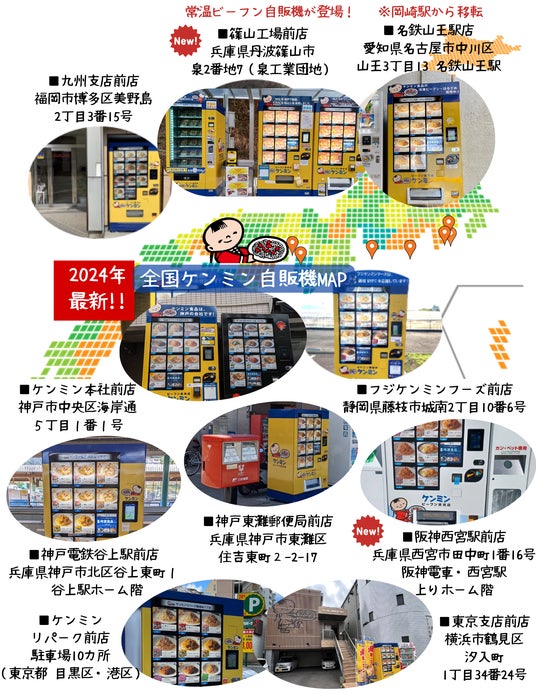現在、冷凍ビーフン自販機は、兵庫、大阪、愛知、福岡、静岡、東京、神奈川の全国7カ所、計22台あります。