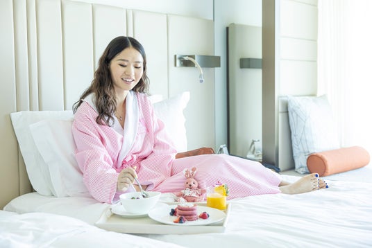 ロイヤルハワイアンで人気のステイプラン「Pretty in Pink」をアレンジ。ピンク色のバスローブを着て一緒に過ごすのは“ピンクバニー”。ロゼスパークリングで乾杯をして、翌朝はプラン限定のピンクパレスパンケーキをお楽しみいただけます。東京にいながら“Pink”に染まるロイヤルハワイアンでゆったりとくつろぐような時間をお過ごしいただけます。
