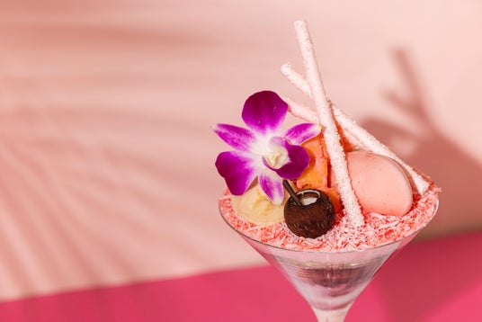 “マイタイ”を世界に広めた「ロイヤルハワイアンマイタイ」やラムにココナッツやオレンジのリキュールを合わせた「ピンクパレス」など4種のカクテルをお楽しみいただけます。