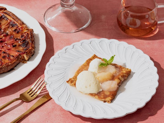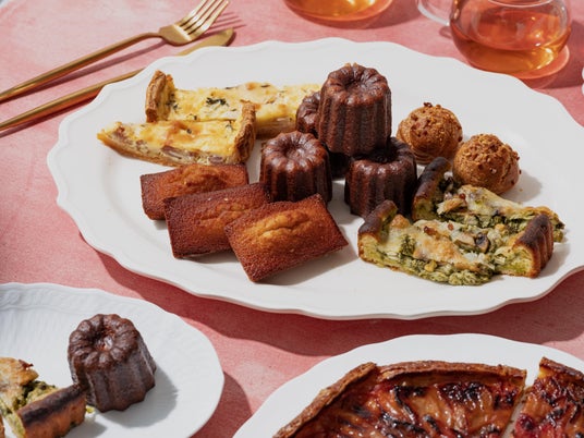 ▲Bake Wagon/ベイクワゴン お客様の目の前までお運びするベイクワゴンは、“カヌレ”、”シューパリジャン“、”季節のフルーツガレット(ネクタリン)“、”フィナンシェレーヌ”、“スコーン”、“キッシュロレーヌ“、“チキンジェノベーゼのブリオッシュタルト”の7種類からお好みの焼菓子(キッシュ含む)を4種類お選びいただけます。
