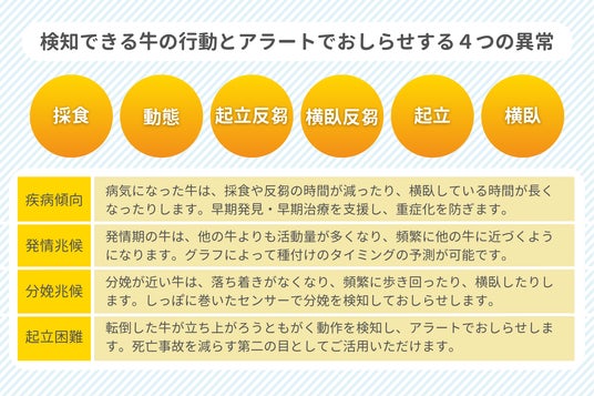 検知できる牛の行動とアラートでおしらせする4つの異常