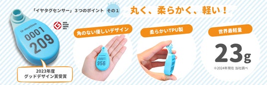 ※2 牛の行動モニタリングセンサー(耳装着型)において世界最軽量