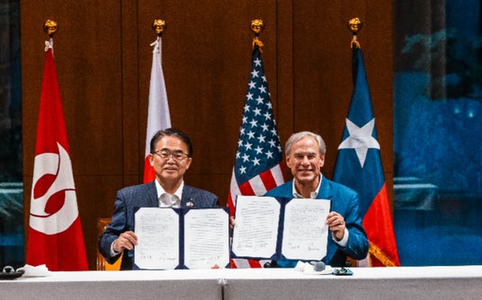 「テキサス州と日本は、高度なテクノロジーで未来を力強く牽引する、経済大国・州です。今後も両国の重要な関係をさらに深め、経済的・文化的な結びつきを強化していく必要があります。愛知県とのこの重要な経済開発協定に署名できたことを誇りに思います。この協定は、医療、ライフサイエンス、バイオテクノロジー、エネルギー、イノベーションなど、重要な産業分野における投資、貿易、協力を促進するものです。テキサス州と日本が技術革新の未来をリードする中、今回の協定は、テキサス州および日本の住民に経済的自由を提供し、将来の繁栄を築く機会を創造するものです。」(アボット知事のコメント)