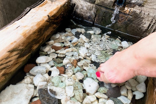 「天然水の足水」の温度は約14℃ 気持ちの良い冷たさです