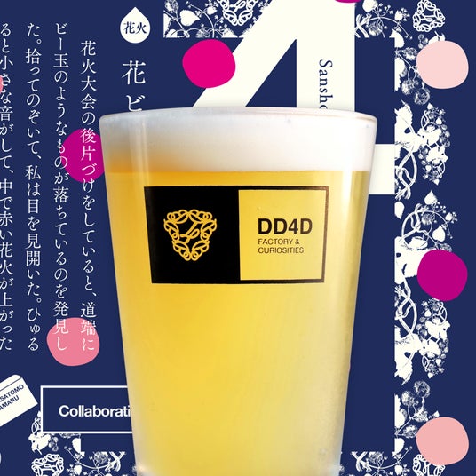「ラベル小説」とは、DD4D BREWINGのクラフトビールのラベルに、田丸氏のショートショートが刻まれた、読みながら味わう新しい体験を提供するプロジェクトです。第一弾の「甘・酸・苦」3部作に続き、今回は「花火」をテーマに、夏らしい華やかな世界観のビールとストーリーが展開されています。