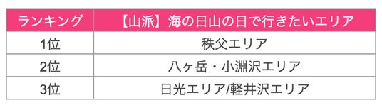 ■山派が「海の日」「山の日」、そして週末旅行に行きたい人気のエリアおすすめリスティング