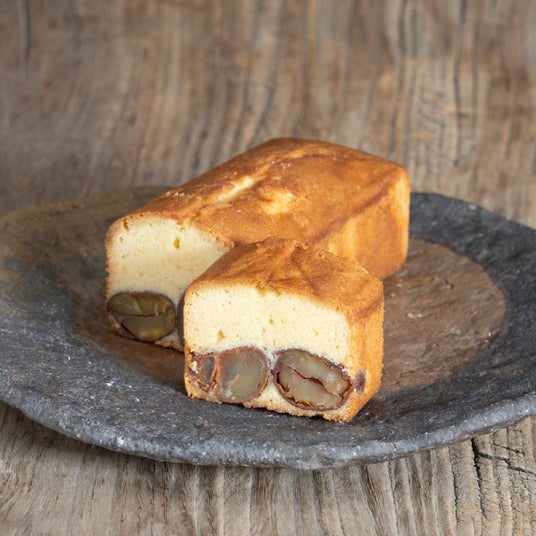 国産和栗の渋皮付き甘露煮をたっぷり200g使用。バターの風味、和三盆糖の優しい甘さの中に、栗の風味がほっくりと。