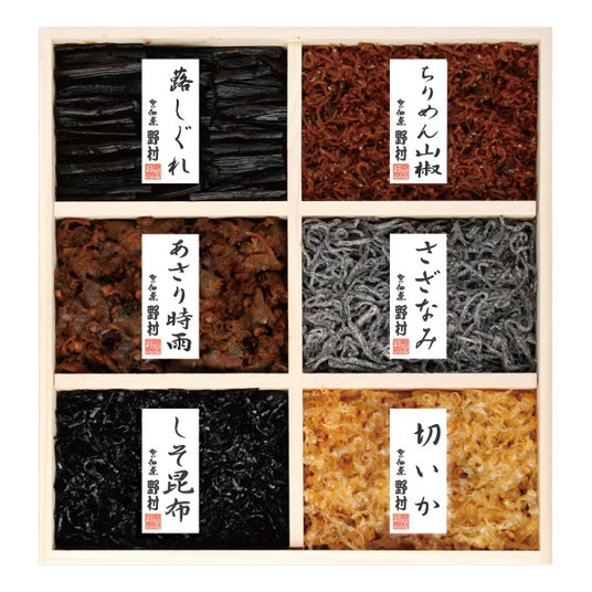 暑い夏にさっぱりと食べたくなるお茶漬のお供にもぴったり。京佃煮6種を詰め合わせました。
