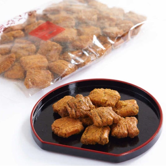 店頭販売は全国で大丸京都店だけ! 山椒、七味、胡椒が利いた香ばしいあられ。店頭では山椒増量の無料サービスも承ります。