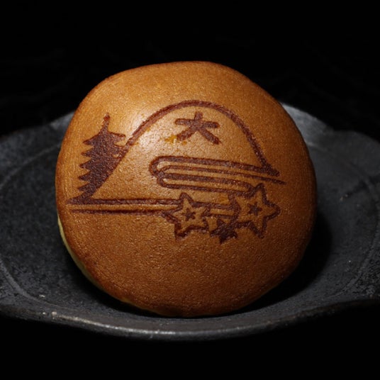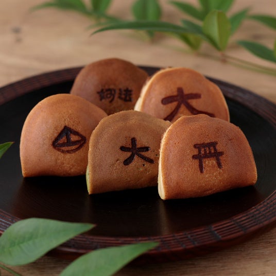 甘露煮の栗と大納言小豆のつぶあんを、1枚1枚手焼きで作ったどら焼き生地で包み、大文字をあしらいました。