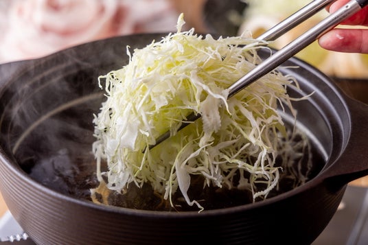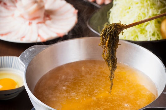 【POINT 02】キャベツやもずくを一掴み鍋の中に入れ、その後お肉をしゃぶしゃぶしてください。