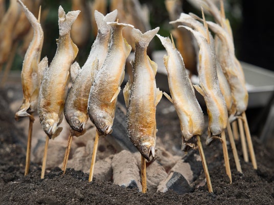 ■原始焼き串に刺した魚や肉を囲炉裏で立てて焼くことで、程よく脂と水分を落とし旨みを凝縮。