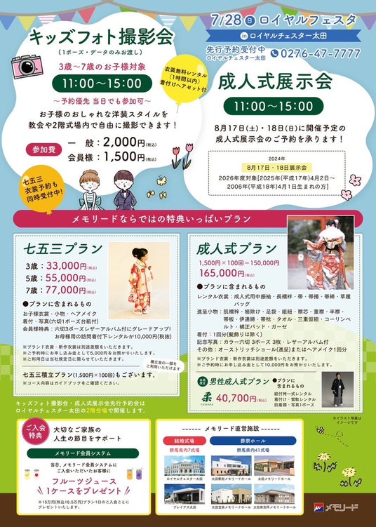 6.ウエディングドレス、七五三、振袖 衣装展示・成人式展示会 先行予約会・キッズフォト撮影会