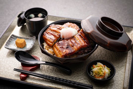 訪日外国人に人気の温玉うな丼。半熟たまごとタレが絡む、濃厚な美味しさ。