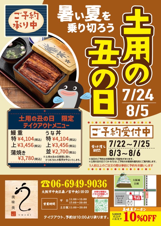 全て税込の価格でございます。土用の丑の日に限り、ひつまぶしの販売を中止します。