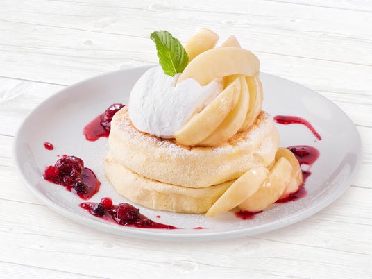 ・ふんわりとした生地は焼き手の技術が問われる職人技のパンケーキです。低脂肪でフレッシュなリコッタチーズと卵黄を練りこみ、卵白で泡立てたメレンゲを加え、注文を受けてから一枚ずつ丁寧に焼き上げています。