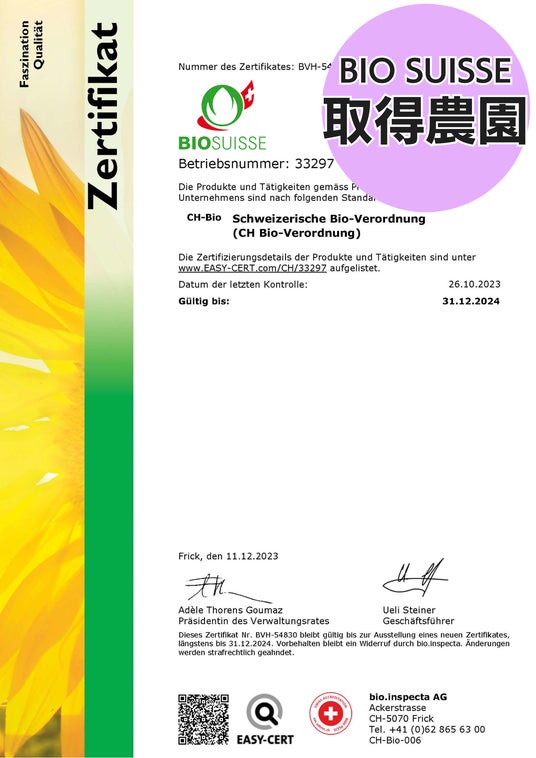 弊社の取り扱う原料は、優良農業規範であるGACP認証を取得した農業実施、Bio Suisse取得の農場で栽培、GMP取得工場でCBDの生産をしており、スイス国内では薬局にも卸しております。