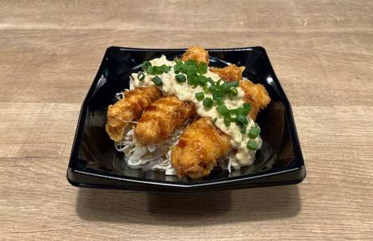 4、タルタルソースをカーネルクリスピーに乗せ、彩りに万能ねぎを散らせば完成です