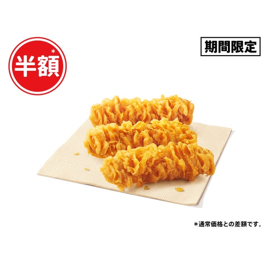 開催の度にご好評をいただいている、あのキャンペーンが久々のカムバック! KFCの大人気サイドメニュー「カーネルクリスピー」がとってもおトクになる、「カーネルクリスピー3ピース半額」キャンペーンを開催します。