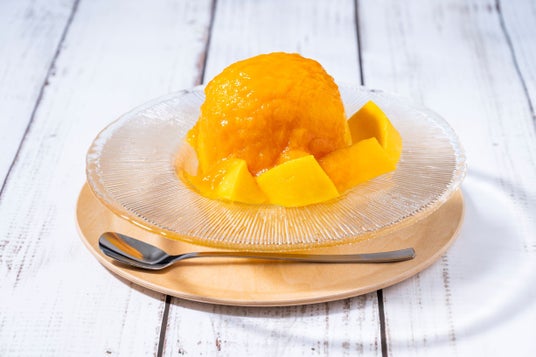 ・マンゴー甘みと酸味のバランスがちょうど良いタイ産のマンゴーを使用。そのマンゴーソースにはパッションフルーツをブレンドし、爽快感のある酸味をプラスしました。純氷の中には杏仁プリンとヨーグルトアイスが入っています。