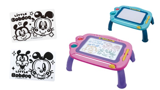 特徴:かわいらしい「リトルボブドッグ」のトレースフィルム2種類付きのおえかきデスク。本体カラーは「ピンク/ブルー」の全2種類。足部分は簡単に取外しが可能でボードとデスクを切り替えられます。カラフルな4色ボードで何度でも描いて、消して、楽しく遊べます。
