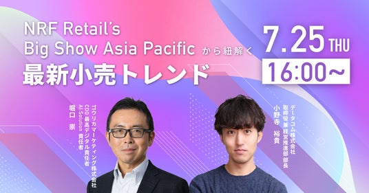 「人に寄りそう合理化」で企業変革をサポートするゴウリカマーケティング株式会社(本社:東京都渋谷区、代表取締役:岡本賢祐、以下ゴウリカマーケティング)は、7月25日(木)にデータコム株式会社(本社:宮城県仙台市、代表取締役:小野寺修一)と共同で、今年初開催されたアジア最大規模の小売業界向けイベントNRF Retail’s Big Show Asia Pacificの情報を基に、小売業の海外トピックスについてのウェビナーを実施いたします。