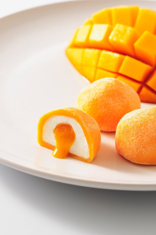 生クリームとマンゴーソースをマンゴーガナッシュで包み込みました。