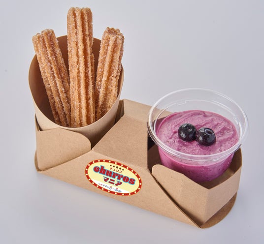 チュロスにディップするソースはクランベリーやブルーベリーを使用し、酸味と甘みが組み合わさ