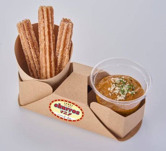 チュロスにディップするソースはみんな大好きカレー味。ちょっぴりピリっとした、あと引くおい