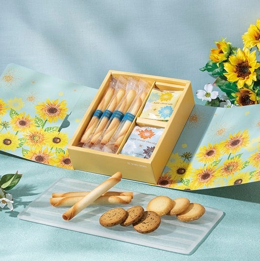 代表商品のクッキー「シガール」と、季節限定のクッキー2種類を愛らしいひまわりのパッケージに詰め合わせました。