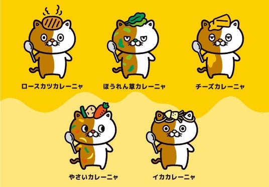 ココイチのカレーが大好きすぎて、カレー色に染まってしまった(いや、ほぼカレーになってしまった)ネコたち、ネコイチ!!それぞれの推しトッピングが頭の上にのっているのが特徴。「CoCo壱番町」という町に住んでいて、たくさんの仲間と刺激的な毎日を過ごしている。