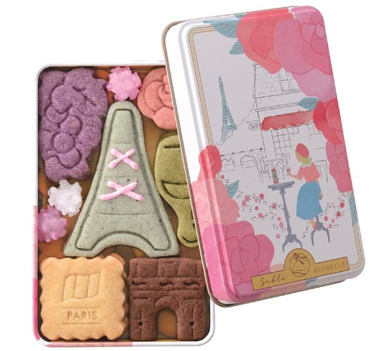 世界の国、都市をテーマにしたサブレ缶です。可愛らしいデザインの小さな缶にそれぞれの国、都市にちなんだモチーフのサブレが入ります。ブランドのイメージキャラクターのミシェルが世界を旅して見た美しい花と景色、食べ物など、大切な旅の思い出を小さな可愛らしい缶にギュッと詰め込みました。種類は全16種類となります。缶のパッケージ、中身の種類もそれぞれ異なった、ブランドを象徴するメイン商品になります。