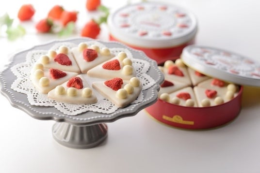 フリーズドライの苺とホワイトチョコでコーティングされたさっくり食感のサブレと、