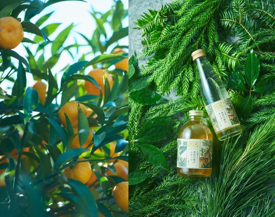 シロップの原材料は、吉野杉、吉野桧、赤松、クロモジ、モミ、大和橘と砂糖のみ。瓶を開けると、たおやかなスギの香り、森を感じるヒノキの清々しい香り、オレンジを思わせる削りたての赤松の香り、華やかで上品なクロモジの香り、グレープフルーツのような爽やかなモミの香り、そして鼻を抜ける大和橘(やまとたちばな)の青いフレッシュな香りが混じりあい、まるで森の中で深呼吸した時のような感覚へと誘います。