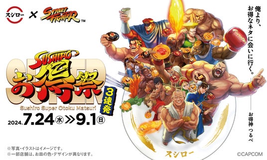 株式会社あきんどスシロー(本社:大阪府吹田市、代表取締役社長:新居 耕平)は、株式会社カプコンが展開する大人気格闘ゲーム「ストリートファイター」とのコラボ企画第一弾『スシローSUPERお得祭 [第一弾]大切り対決!まぐろVSサーモン』を7月24日(水)より実施いたします。