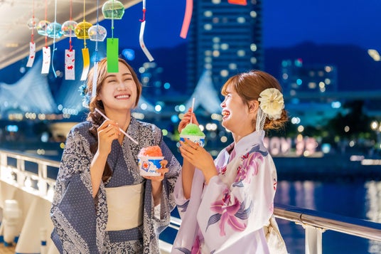 船内には涼しげな風鈴の音色が。潮風を感じながら、ふわふわのかき氷と一緒に日本の夏を満喫。