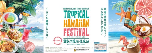 2024年7月19日(金)から8月18日(日)まで、「トロピカル・ハワイアンフェスティバル2024 inアーバンドック ららぽーと豊洲」が開催されます。本フェスティバルは、「食文化」「音楽」「雑貨」など「ハワイ」の魅力を日本国内で体験できるイベントとなっております。