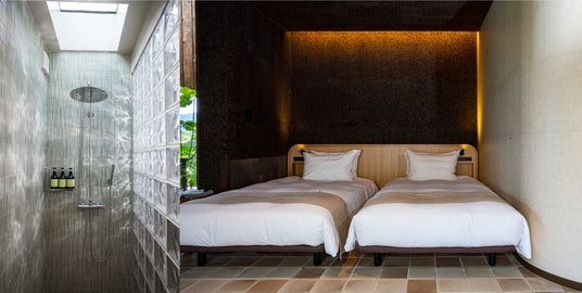 さらに、静かで落ち着きのある洞窟のような寝室とは対照的な明るく開放感のある浴室は、奄美の海をイメージしたタイルに天窓からの光が煌めき、滞在者を都会では味わえない非日常へと誘います。
