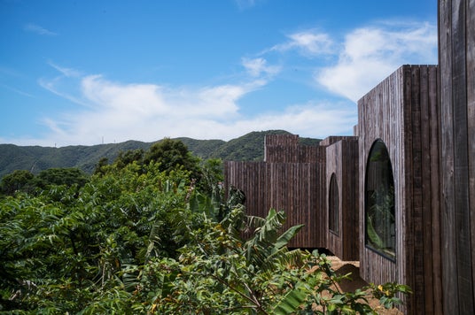 それぞれの宿泊棟は、いくつかの植木鉢を積み重ねていくように構成されています。植物が生い茂った自然の中にうずまるような感覚を味わえるゲストルームです。葉が落ちて、大地に分解されて、やがて新しい命の土台となるように力を再び得て、青い空と海の待つ開けた世界を体験できる場所。このようなイメージのもと、自然の不思議な力が満ちる空間が完成しました。