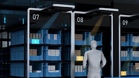 ピッキング対象の品物の場所や個数をプロジェクターで投影する「プロジェクションピッキングシステム」や、デジタル表示器の点灯で作業者を誘導する「無線デジタルピッキングシステム」を出展。保管棚に貼り付けた画像認識コードを読み取り、品物の場所や数量をガイド表示するDynabook社製スマートグラス「インテリジェントビューア<AR100>」や、保管棚内の在庫有無の検知にも応用可能なシャープセミコンダクターイノベーション社製「距離センサ」なども展示します。