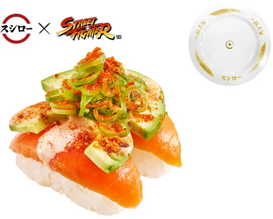 さらに、「ストリートファイター」とスシローのコラボ商品も登場いたします。「サーモンアボカドレッドスパイス」と「びん長まぐろアボカドレッドスパイス」は、ヤンニョムマヨソースと特製レッドスパイスの辛さがアクセントになり、どちらも夏におすすめなHOTでスパイシーな創作すしです。