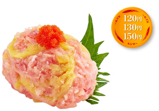目玉商品は、赤身の味が濃厚といわれる40kg以上の大型サイズのめばち鮪を大切りにした「大切り厳選めばち鮪」と、味にこだわったサーモンを店内で大切りにした「大切りサーモン」です。どちらもスシロー全店で“税込100円”にて販売いたします。そのほか、おはぎのような見た目をした「まぐろのおはぎ(たくあん入り)」や「サーモンのおはぎ(たくあん入り)」、サーモンや焼とろサーモンを山のように重ね、ねぎまぐろとカマンベールチーズをのせ、バジルソースといくらをあわせた「サーモンマウンテン」などのおすしをご用意しております。