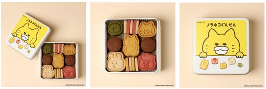 また、7月から発売し大人気の『ノラネコぐんだん』のクッキー缶や、大好評をいただいている『ノンタン』『ねないこ だれだ』などを含む全8種類の絵本コラボクッキー缶をお買い求めいただけます。