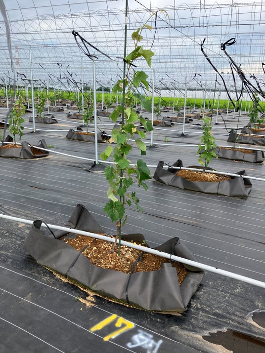 2024年3月より、日本農業の子会社・ジャパングレープ株式会社が運営する約4haの新規整備圃場(栃木県宇都宮市)にて、シャインマスカットの定植10本に「宙炭」の施用を開始いたしました。2025年9月頃には、広く採用される栽培方法に比べ、採用する根域制限栽培では約40%増の収穫量を予定し125Lの宙炭を使用したことで14.4kgの温室効果ガス削減が見込まれます。また「宙炭」の施用の拡大も視野に入れて進めてまいります。