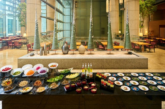 インターナショナルダイニング「ヴェンタリオ」では、アフリカ、ヨーロッパ、アジア、中東の影響を受けたバラエティ豊かなモーリシャス料理に囲まれて育ち、スパイスを巧みに操る料理を得意とする料理長 ヴィンセント・ワンが織り成す美食の数々をご用意しております。まるで世界を旅しているかのような、さまざまな食文化が融合した前菜、日本各地の選りすぐりの生産者から届く新鮮な野菜や“ウェルネス”を意識した世界各地のサラダ、旬の食材を使ったスープが、ブッフェ台に色鮮やかに並びます。メニューからお好きな一品をそれぞれ選ぶメインディッシュとデザートは、テーブルまでお届けいたします。